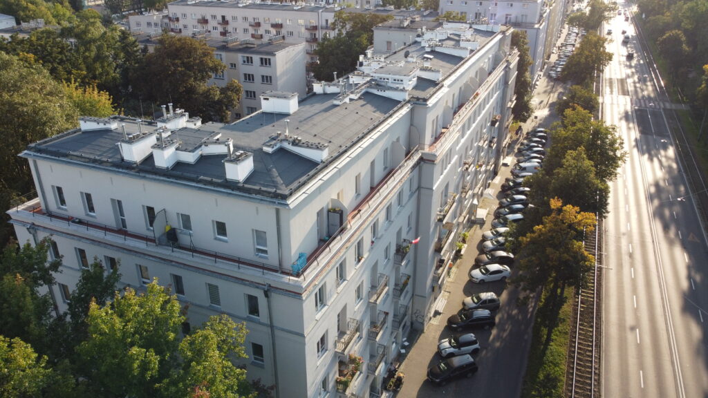 W ramach prac wykonano także nowe obróbki blacharskie, oczyszczone zostały balustrady, uzupełnione ubytki w parapetach z lastryko oraz wymienione drzwi do klatek schodowych.